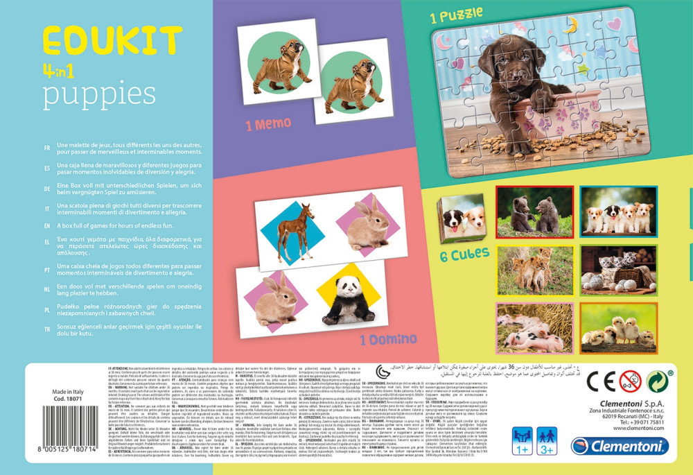 Ez a szuper Clementoni társasjáték 4 az 1-ben játék készlet, biztosan elnyeri a tetszését,minden állatbarátnak. A készletben megtalálható egy puzzle kirakó, egy dominó játék, egy memória játék és végül, de nem utolsósorban egy mesekocka játék is. A gyerekek a számukra legegyszerűbbel kezdhetik a játékot majd haladhatnak szépen sorban a legbonyolultabb felé. Jó szórakozást!