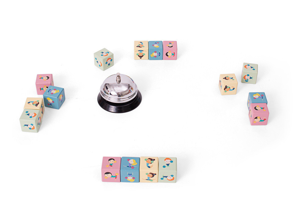Ezek a pompon lányok készen állnak a forgásra. Próbáld meg a leggyorsabban újraalkotni a kártyát a kockák megfelelő helyzetbe és sorrendbe állításával. Amikor befejezted, csengess a csengővel, hogy megnyerd a kártyát.