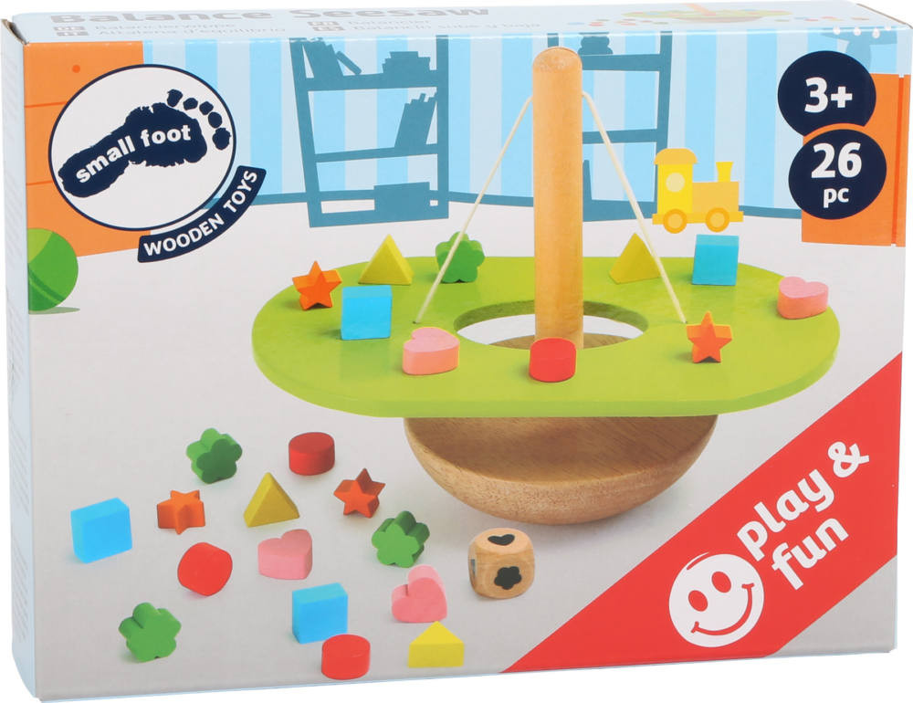 Egy szépen kidolgozott ügyességi játék, amely fejleszti a finommotorikus készségeket. A játék célja, hogy a dobókockával dobott formát kell felhelyezni úgy a hinta lapjára, hogy az ne billenjen fel, egyensúlyban maradjon.