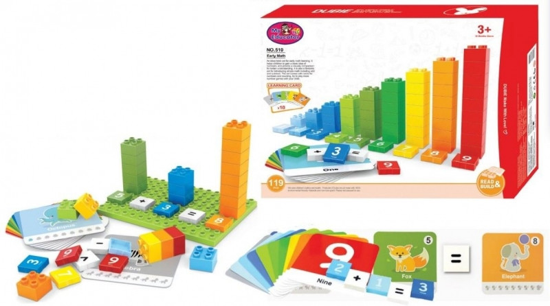 A készlet az alaplapon és az építőkockákon kívül tartalmaz számozott elemeket is, melyek a számképek megtanulását segítik, illetve a matematikai jelek is szavatolják, hogy hosszú ideig szórakoztassa a gyerekeket, a különböző feladatok megoldásával.