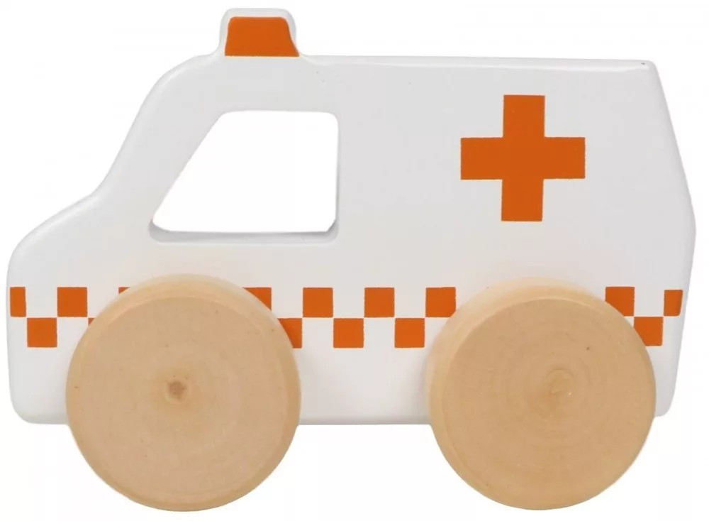 Ezt a minőségi fából készült mentőautót a legkisebbek számára alakították ki. Kezükkel könnyen megfoghatják és már guríthatják is .A fából készült mentőautóval igazán élmény lesz a játék.