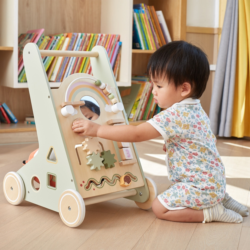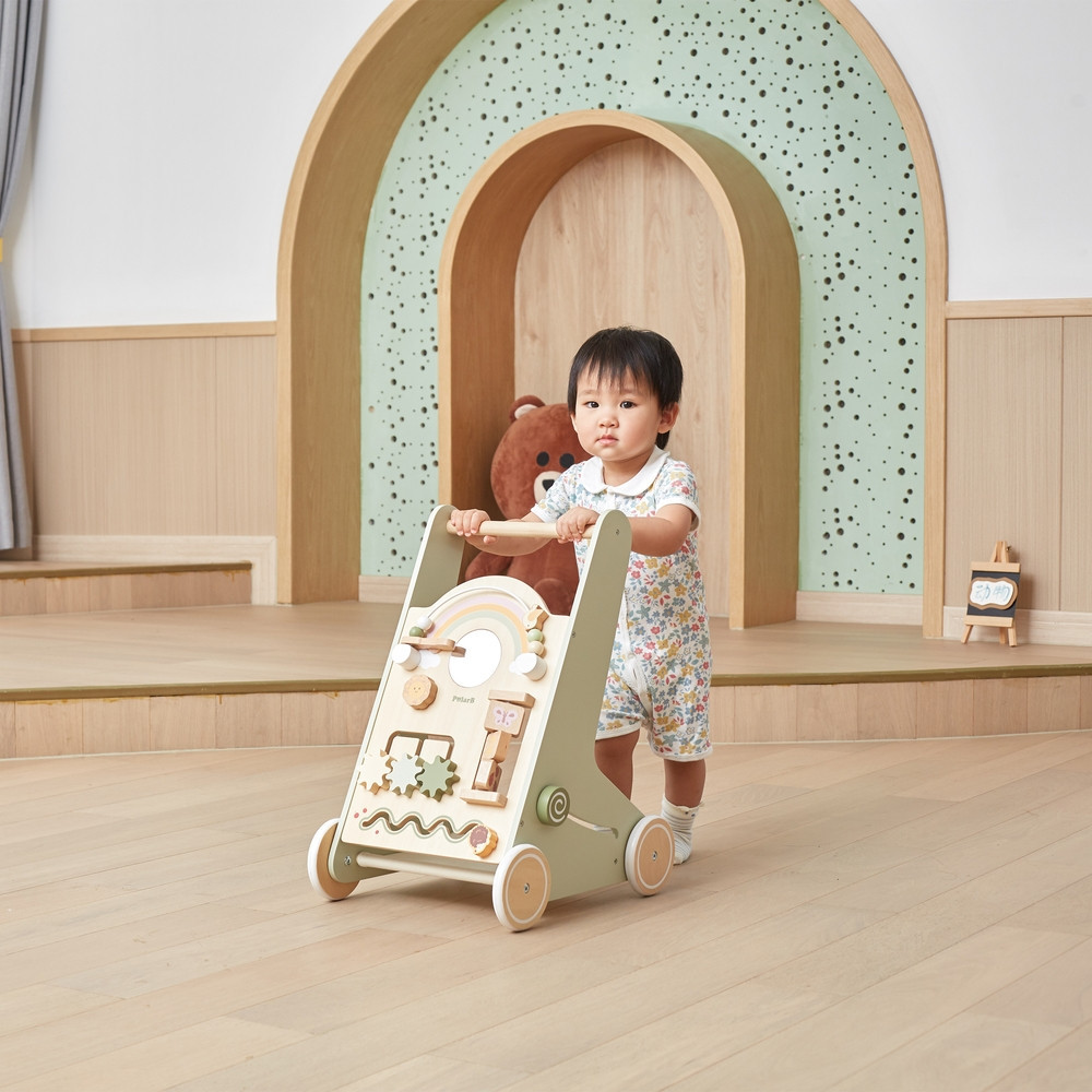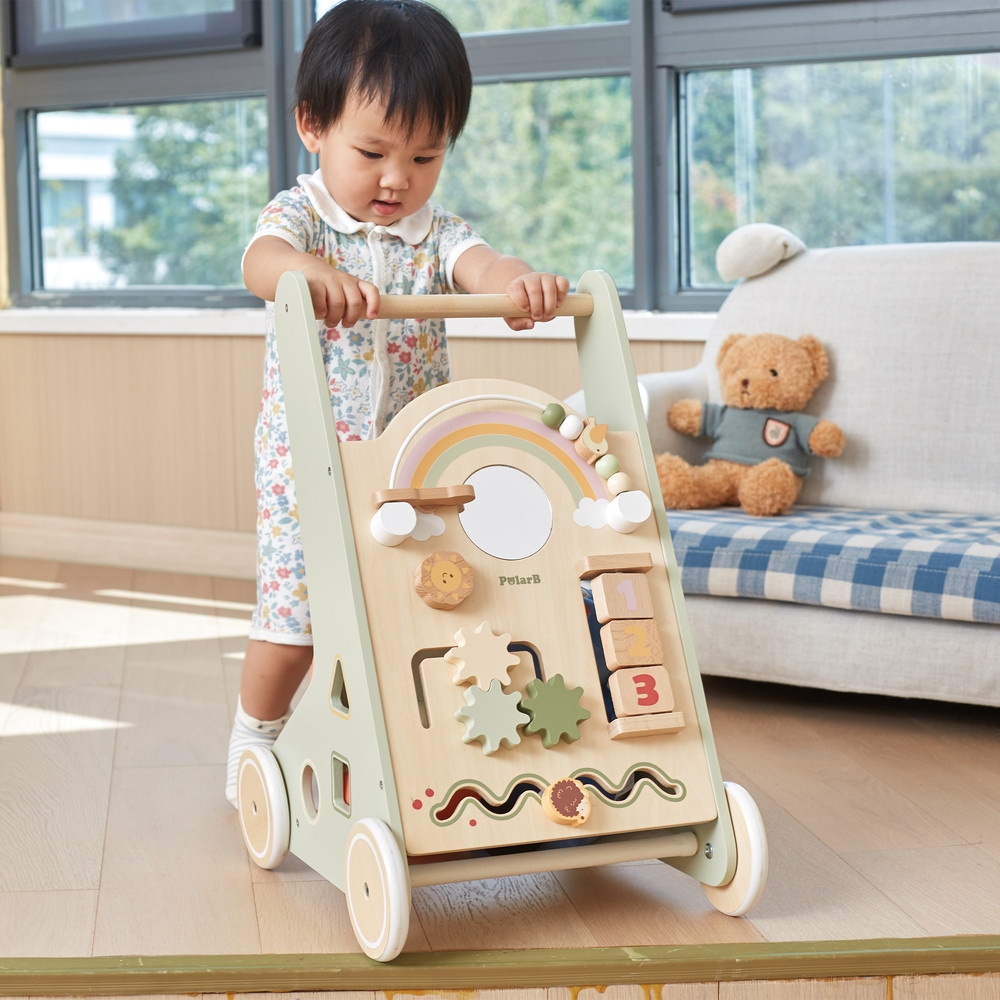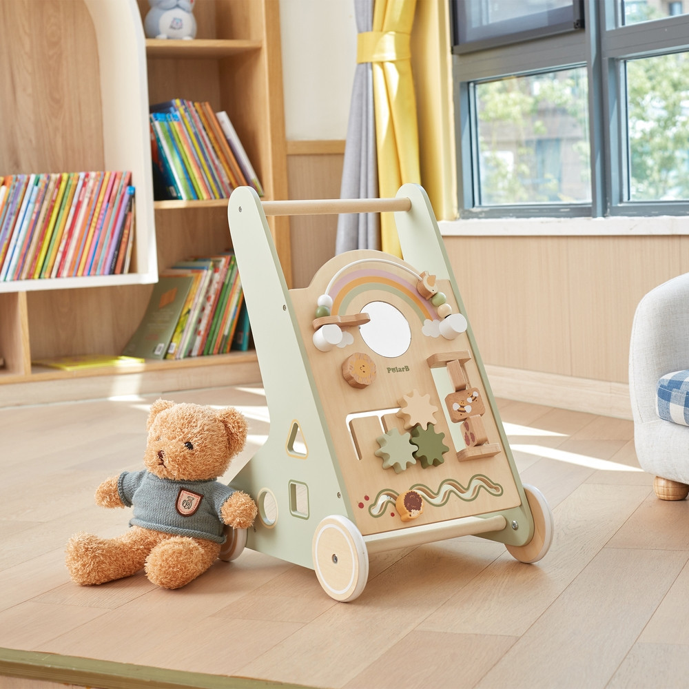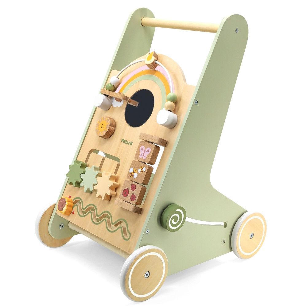 Ez a fából készült járássegítő kocsi tökéletes eszköz a babák első lépéseinek támogatására. A stabil kapaszkodóval felszerelve a kisgyermekek könnyen felállhatnak, és biztonságosan megtehetik az első, bizonytalan lépéseket. Ahogy egyre magabiztosabbá válnak a mozgásban, a kocsi továbbra is kínál támogatást, segítve őket a járás folyamatának tökéletesítésében. A járássegítő kocsi nem csak mozgásra ösztönzi a gyerekeket, hanem biztosítja a szükséges stabilitást és biztonságot a tanulási folyamat minden szakaszában.