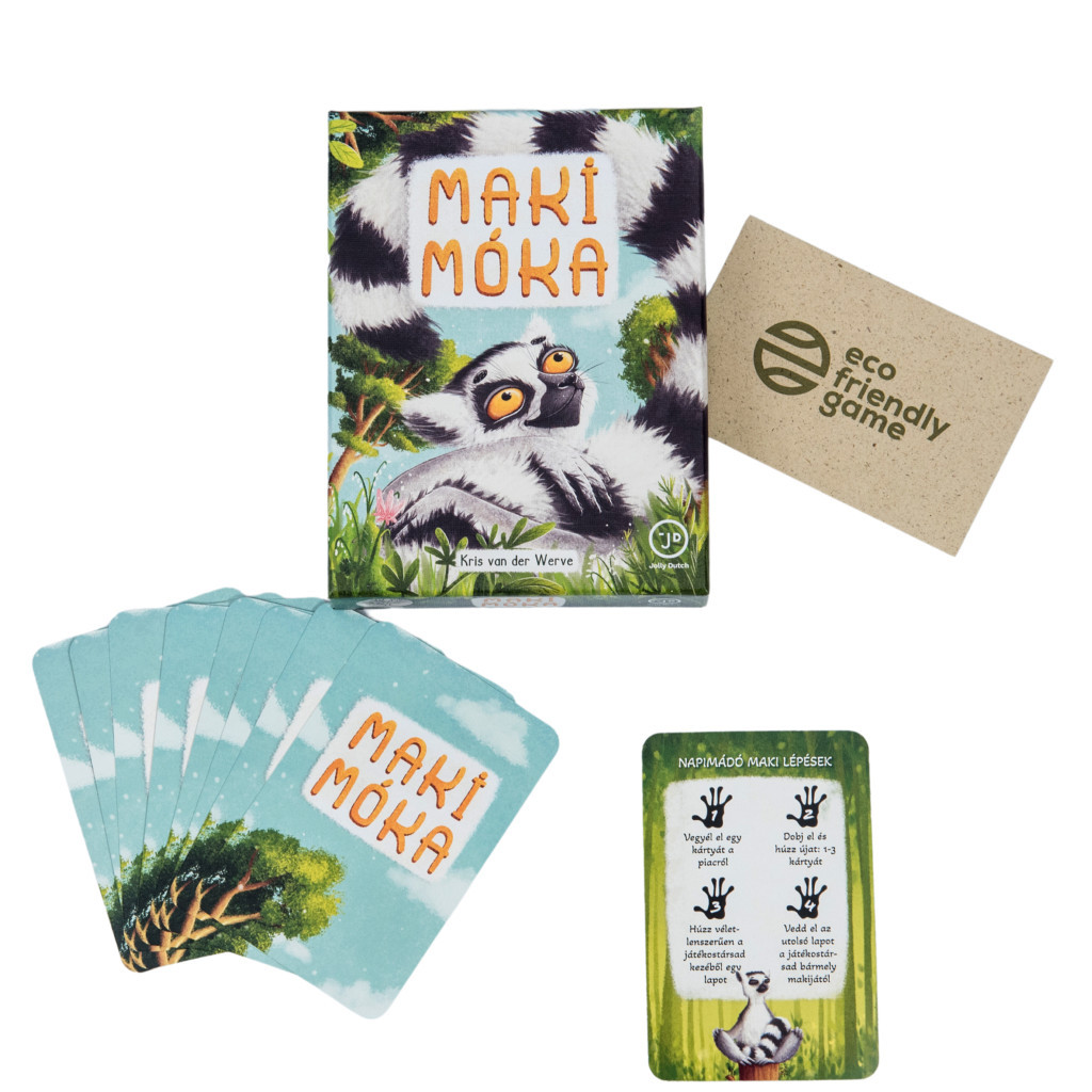A Jolly Dutch Makimóka kártyajáték egy olyan fergeteges kaland, ahol a játékosok a leghosszabb farkincát próbálják összerakni a saját makijaiknak! Kártyáikat úgy tehetik le a játékosok, hogy a színekre és a csökkenő vagy növekvő számsorrendre is figyelni kell.