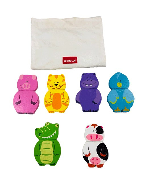 A készletben hat különböző állat van: boci, malac, cica, víziló, kismadár és krokodil, és ezeknek rengeteg vicces variációja.