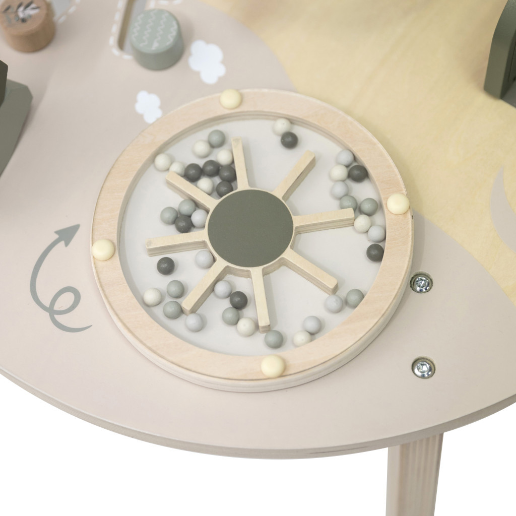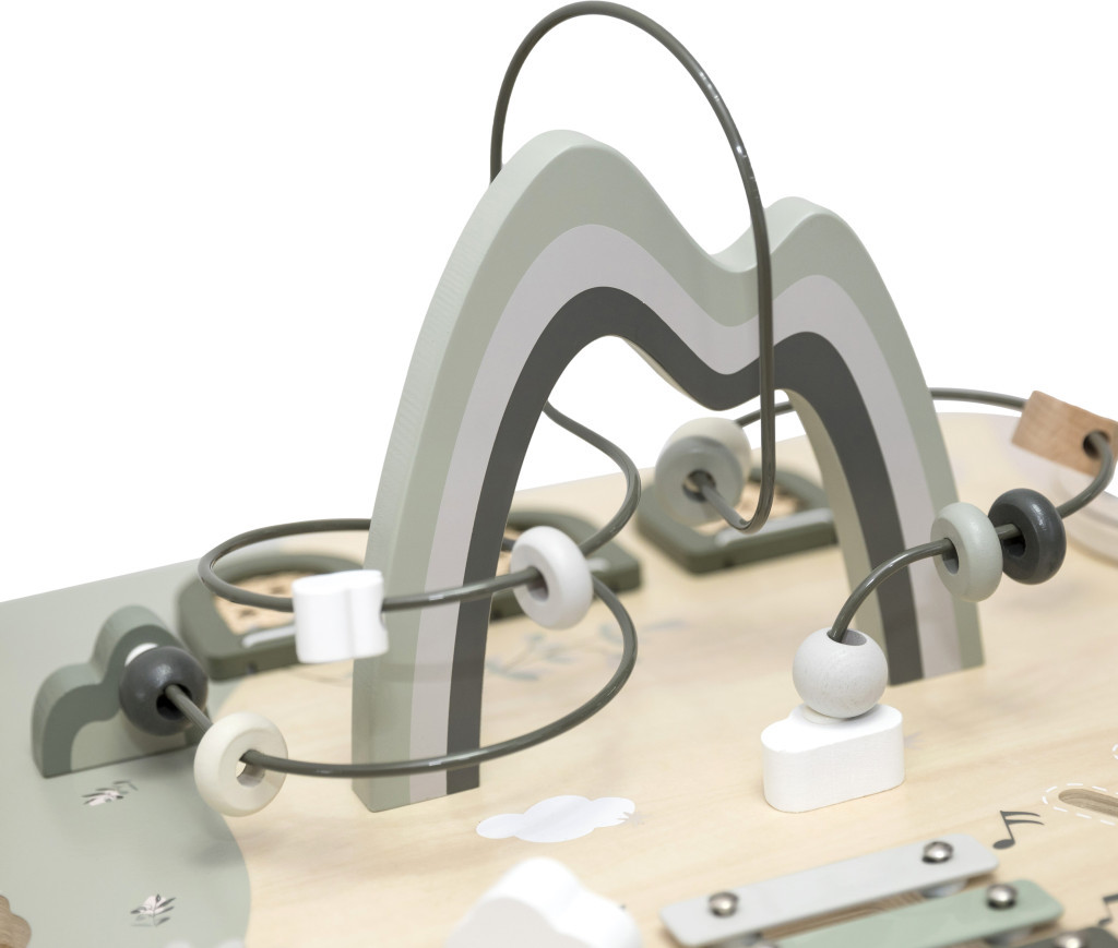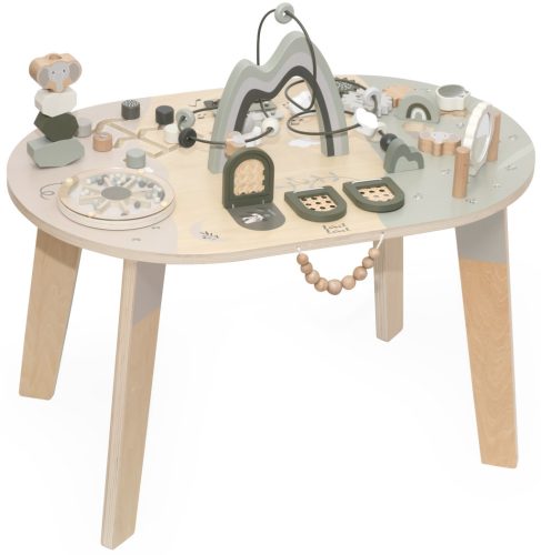 A Label Label interaktív foglalkoztató asztal nemcsak rengeteg szórakozást nyújt, de a prémium minőségű fa és a gondosan kidolgozott, biztonságos felületek révén tartós és megbízható játékpartner is.