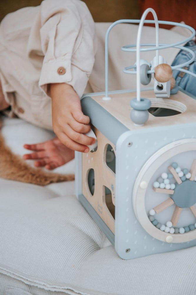 A Label Label Activity kocka egy gyönyörű, prémium minőségű fajáték, amely játékosan támogatja a finom motorikai fejlesztést és a korai tanulást. Ez a fejlesztőkocka a kicsik kedvenc játéka lesz, hiszen minden oldala új élményt és felfedeznivalót rejt.