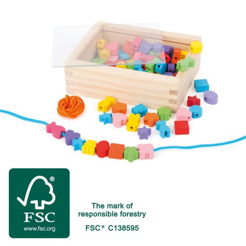 • Természetes anyagok: Az FSC® 100%-ban tanúsított fából készült gyöngyök garantálják, hogy a játék biztonságos és környezetbarát.