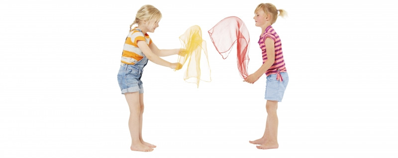 A vékony, szép színű kendők feldobása és elkapása elősegíti a mozgás-, és a szem-kéz koordináció fejlesztését.