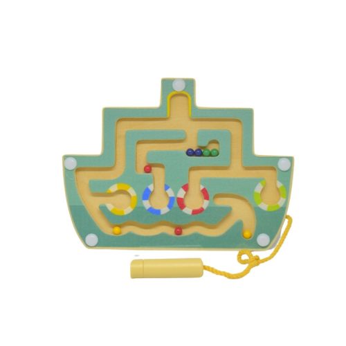 A hajó formájú, zöld színű játék egy mágneses bot segítségével kínál szórakozást és tanulási lehetőséget a gyerekeknek. A játék célja, hogy a gyerekek a mágneses bot segítségével a színes golyókat a kijelölt helyekre mozgassák. Ez a folyamat nem csupán szórakoztató, hanem kiválóan fejleszti a gyerekek finommotorikus készségeit is. A golyók mozgatása közben a gyerekeknek pontosan kell irányítaniuk a botot, ami javítja a szem és kéz közötti koordinációt.