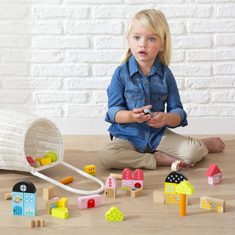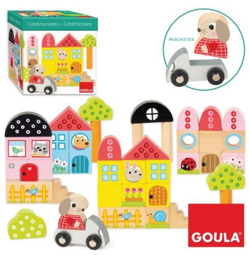 A Goula faépítő készlet 41 élénk színű fa építőelemet tartalmaz, különböző formában és méretben, így a kisgyermekek különféle szórakoztató jelenetet készíthet, képzelőerejét fejlesztheti.