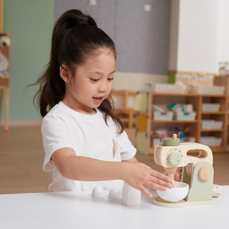 A gyerekek megtanulják, hogyan osszák meg a játékokat másokkal, hogyan működjenek együtt, és hogyan kommunikáljanak a játék során. A mixergép használata különösen alkalmas arra, hogy a gyerekek megtanulják az alapvető konyhai tevékenységeket, miközben szórakoznak. A fajátékok, mint ez a mixergép, természetes anyaguk és tartósságuk révén hosszú távon is élvezetesek maradnak a gyerekek számára.