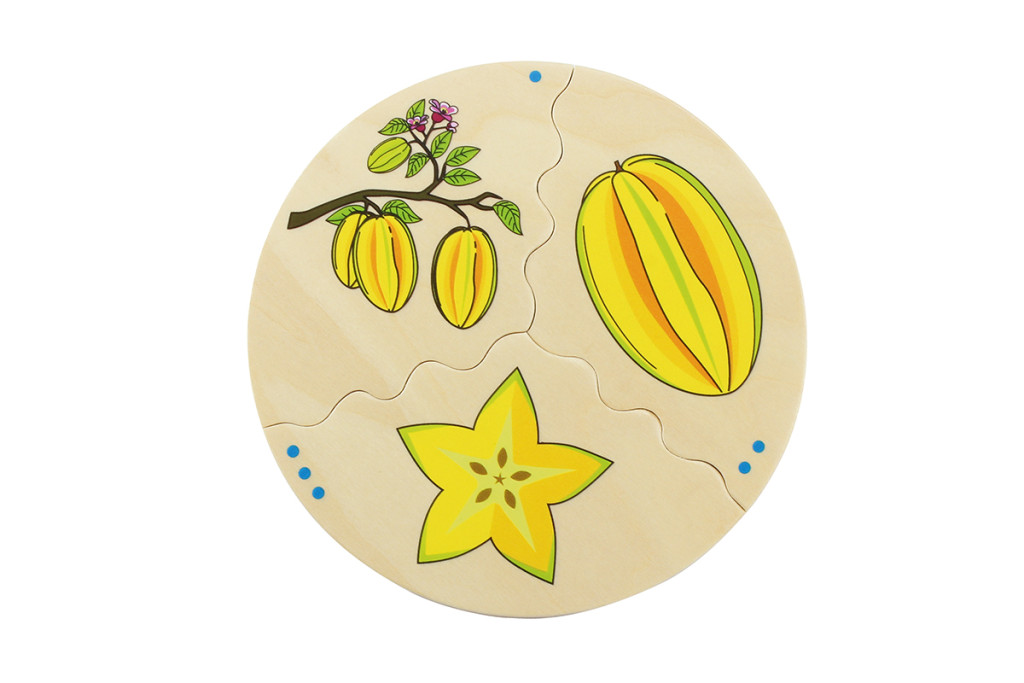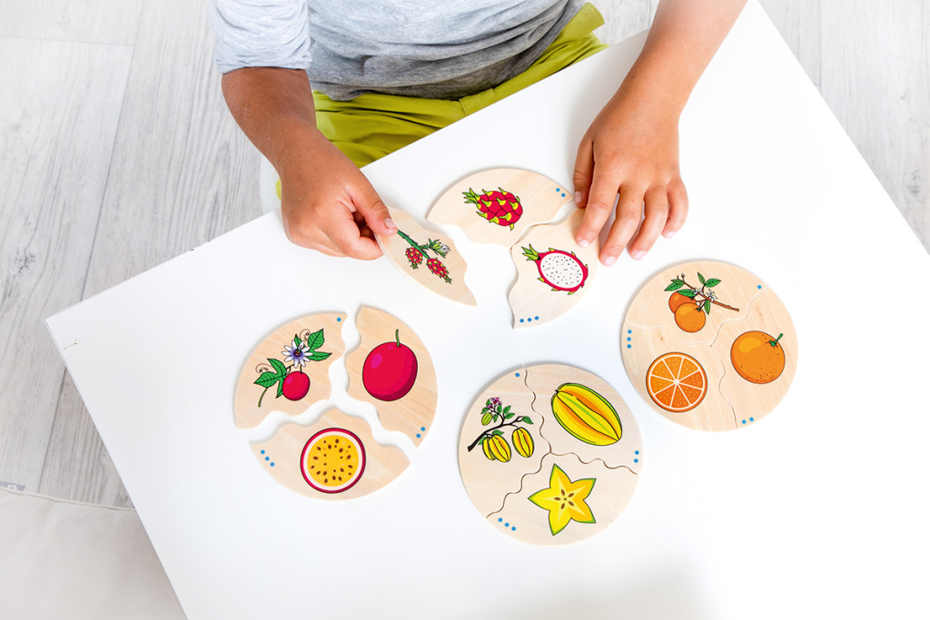 Az otthon is gyakrabban megtalálható gyümölcsökön túl pl. eper, sok egzotikus darab is a kirakható képek közé került, így akár a sárkánygyümölccsel vagy a maracujaval is találkozhatnak a gyerkőcök.