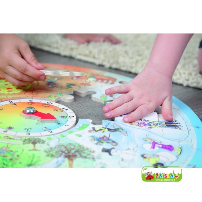 A különleges évszak puzzle kör alapja igazán egyedivé varázsolja a játékot. A közepén található órával pedig mindig beállítható az adott hónap száma.