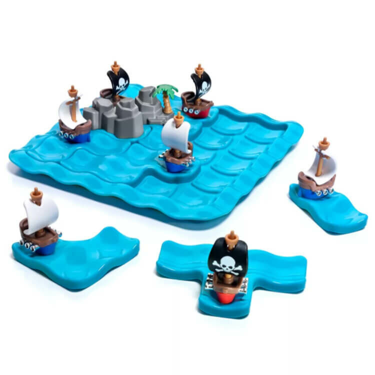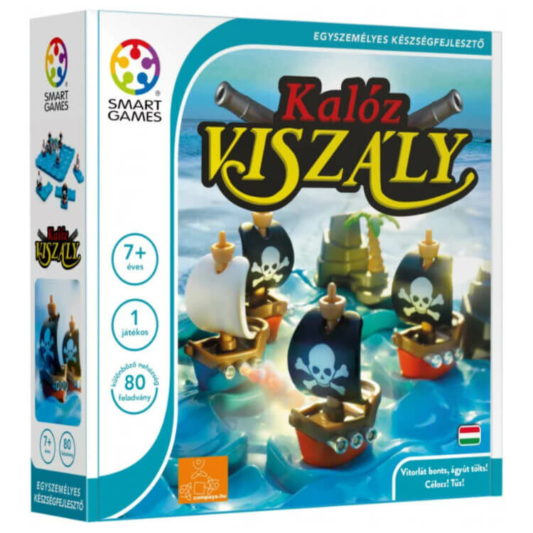 Smart Games, Kalóz viszály Vitorlát bonts, ágyút tölts! Célozz! Tűz! Navigáld a hajóidat, vedd célba az ellenséget, hogy tűzvonalba kerüljenek. Vagy békét szeretnél? Esetleg totális háborút? Ágyút tölts! A Kalóz viszály 4 játékmódot kínál. A játék 80 feladatot tartalmaz (20 feladat játékmódonként). A Kalóz viszály logikai játék a problémamegoldást, a vizuális észlelést, a tervezést és térbeli tájékozódást is fejleszti.