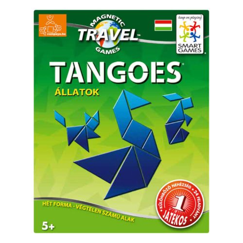 Smart Games, Tangoes- állatok Fejleszti: - logikai következtetést - stratégiai előretervezést - képfelismerést és a térlátást A Tangoes művészi és geometriai elemeket tartalmaz a vizuális érzékelés fejlesztésére, felnőtteknek és gyerekeknek egyaránt. A Tangoes kiváló eszköz a probléma megoldási készség és a csapatmunka fejlesztésére is. Válasszuk ki a megoldani kívánt feladatot, majd a 7 darabkát felhasználva, próbáljuk meg kirakni. A darabok mágnesesek, így a helyükön maradnak. Ha elakadnál, csak fordítsd meg az oldalt és már előtted is a megoldás. A játékhoz 24 feladvány tartozik, de ezen felül kreativitásunkat is latba vethetjük.