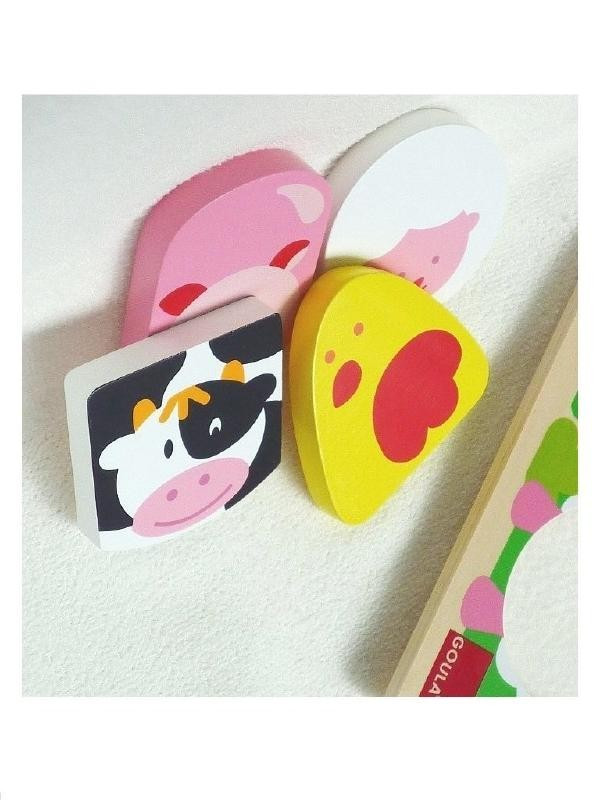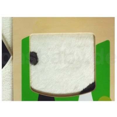 A puzzle elemek alatt az állatokra jellemző tapintású anyag található, melyek segítik a képrészletek felismerését.