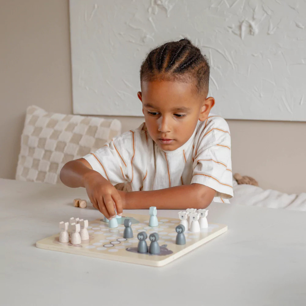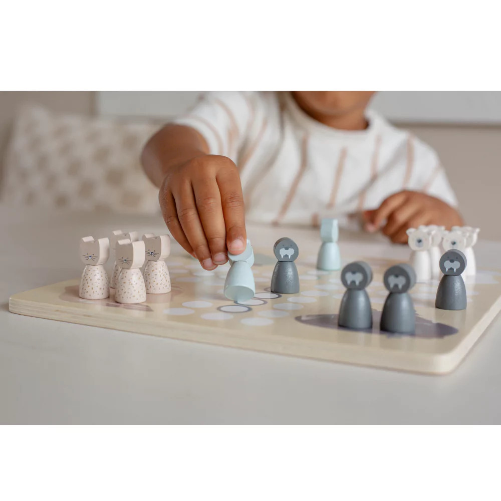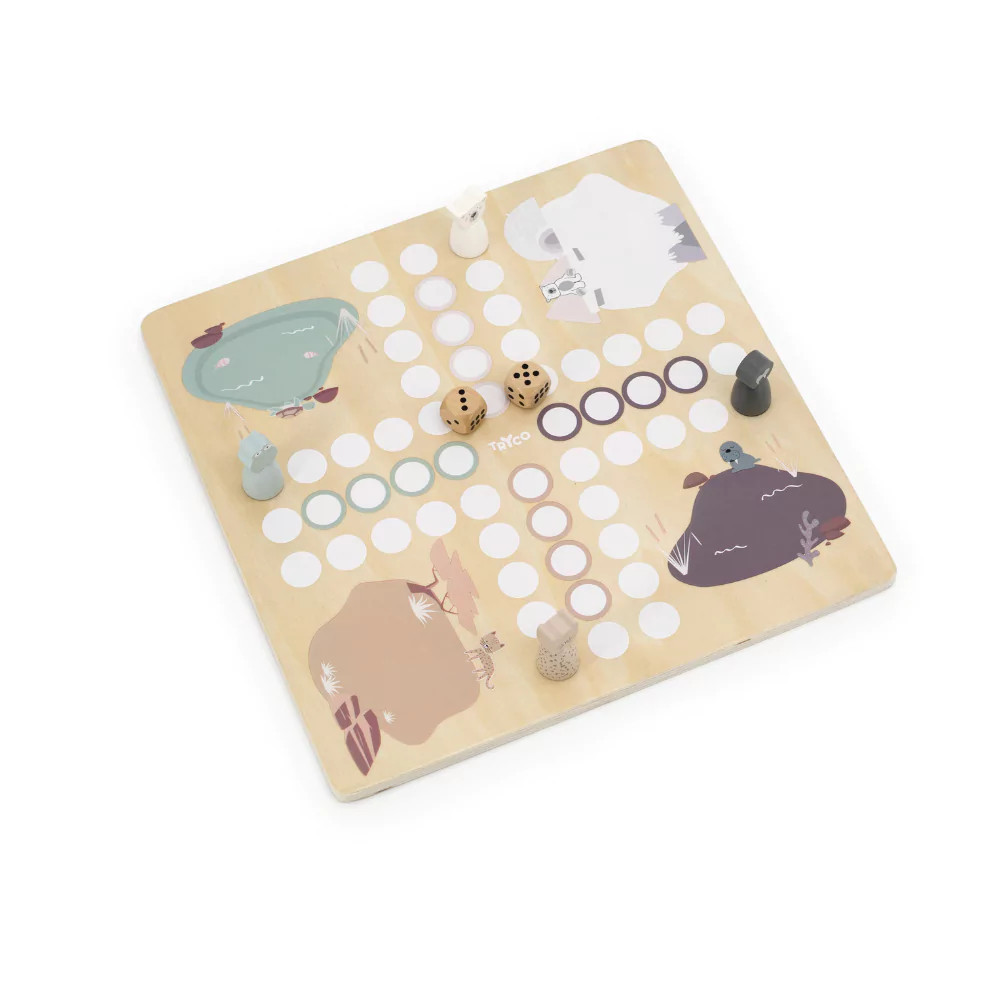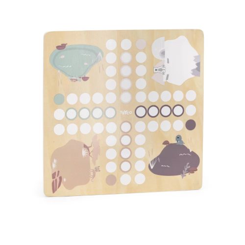 Egy régi játék új köntösben, ahogy azt a Trycotól már megszokhattuk, fából. Ez ám a móka! Jegesmedvék, fókák, vízilovak, leopárdok kelnek versenyre ebben a szépen illusztrált játékban.
