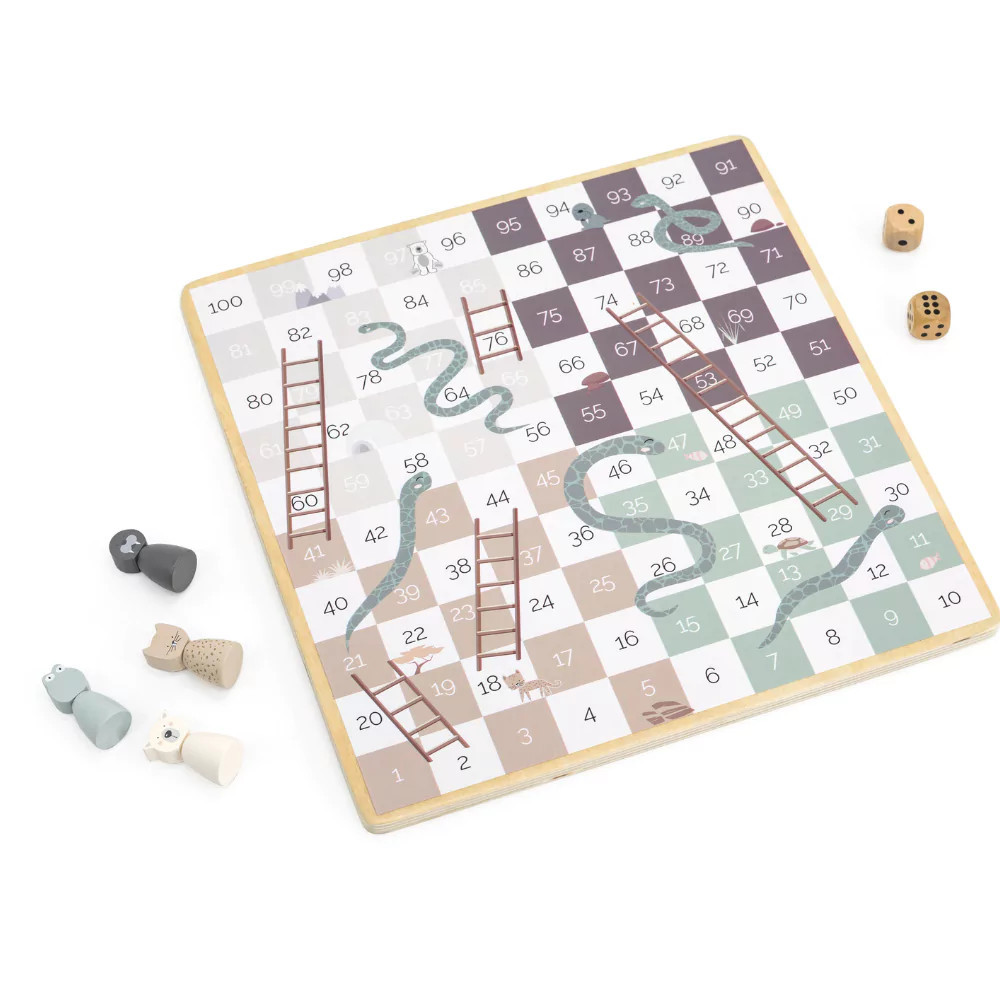 Kétoldalú játéktábla a klasszikus Ki nevet a végén? és a Kigyók és létrák játék