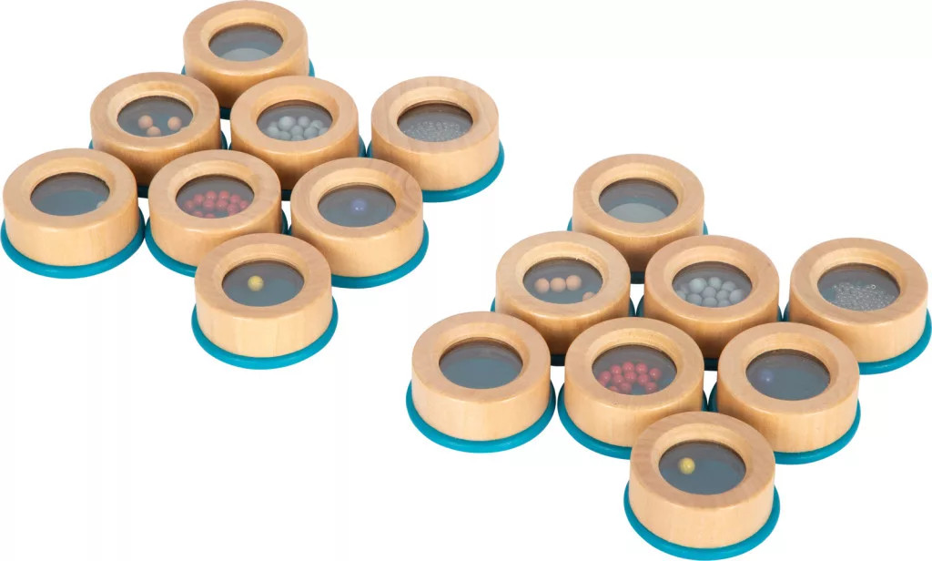 A Small Foot Sensory akusztikus memóriajátéka egy varázslatos eszköz, amely a kicsiket és nagyokat egyaránt elvarázsolja. A játék 16 különleges fatartályt rejt, amelyekben különböző anyagok, mint például színes gyöngyök, fém- vagy fa golyók zörögnek . A feladat egyszerű, mégis rendkívül izgalmas: a hangok alapján kell megtalálni az összetartozó tégelyeket.