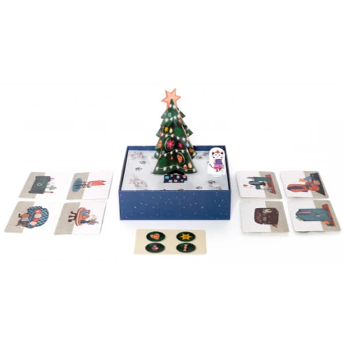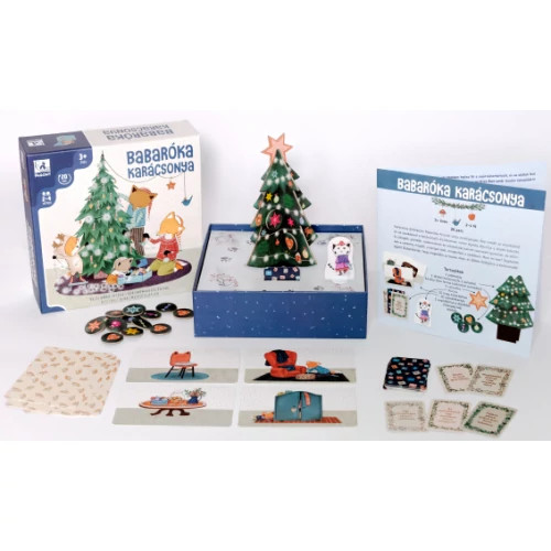 Karácsonyozz együtt Baba rókával! Ebben az egyszerű kooperatív társasjátékban közösen díszítitek fel a karácsonyfát. Igen ám, de Apróka kiborította a díszek dobozát. A csillagok, gömbök, szaloncukrok és mézeskalácsszívek szanaszét gurultak, és eltűntek a szekrény mögött, a kanapé alatt, mindenfelé a szobában. Kiscica pedig már úton van hozzátok! Segítsetek együtt Baba rókának, hogy megtalálja az összes díszt, és időben feldíszítse a karácsonyfát, még mielőtt a barátja megérkezik!