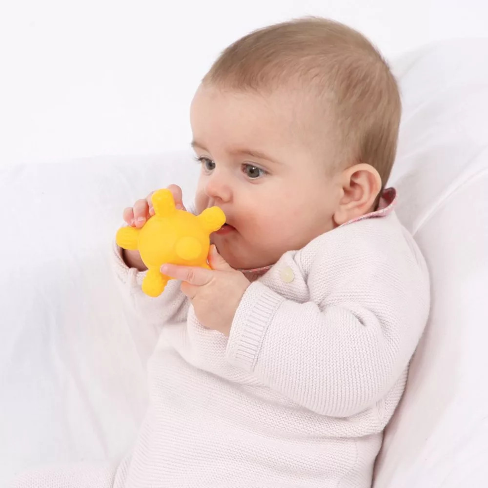 A puha, könnyű műanyagból készült labdák gyengédek a baba ínyéhez, emellett könnyen tisztíthatók, így a higiénia is biztosított.
