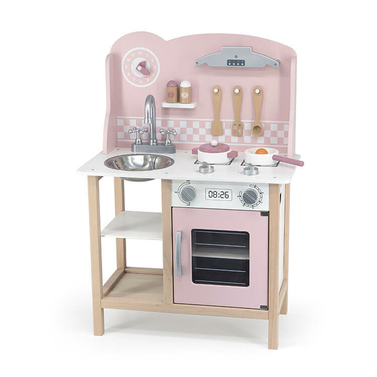 Játékkonyha (rózsaszín) – PolarB fa játékkonyha kis szakácsoknak