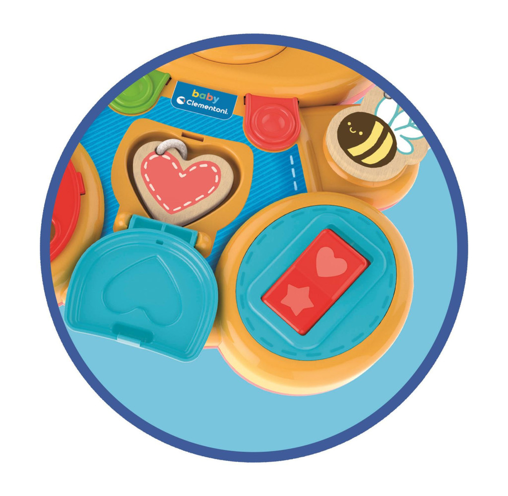 Az olasz gyökerekkel rendelkező Clementoni cég a magas minőség mellett a dizájnra is mindig nagy hangsúlyt fektet, így ez a bájos fejlesztő maci is igazán élénk színekből és átgondolt formákból lett kialakítva.